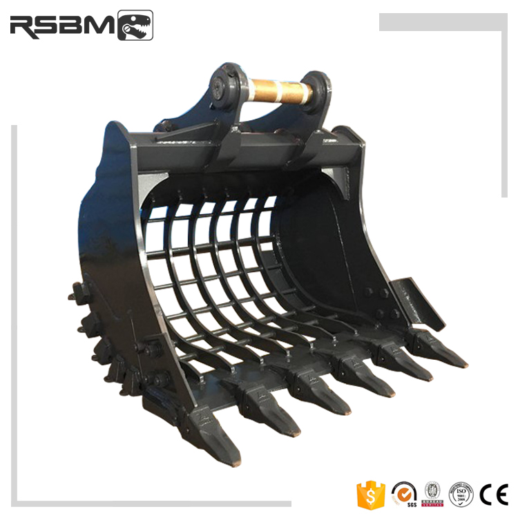 RanSun Skeleton Bucket was made for primary selection of materials of various types, for land reclamation and for pre-selecting materials after demolition. The "gaps" in the grille are determined to suit the dimensions of the product to be selected. Ransun Skeleton Bucket use thick, high tensile round bar recessed deep into the torsion beam, lip, and cross bracings. This innovative design is far stronger, sifts material faster.